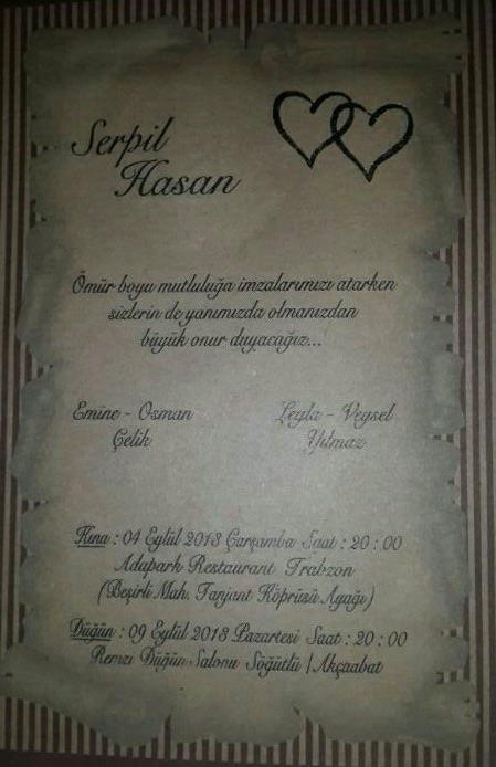 Serpil & Hasan Evleniyor (DAVETİYE) - Yukarıköy Mahallesi Web Sitesi - Maçka/Trabzon