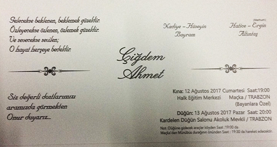 Çiğdem & Ahmet Evleniyor (DAVETİYE) - Yukarıköy Mahallesi Web Sitesi - Maçka/Trabzon