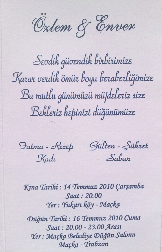 Özlem Ve Enver Evleniyor ( DAVETİYE) - Yukarıköy Mahallesi Web Sitesi - Maçka/Trabzon